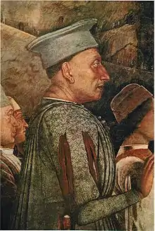 Мантенья в «Принесенні у храм» (Берлін) написав з боків ймовірно, автопортрет і свою дружину Нікколозію Белліні, а Джованні Белліні, який повторив його полотно (Венеція, галерея Кверіні-Стампалія) і замінив лише бічні фігури, ймовірно, на свою і брата (Джентіле Белліні), матір і сестру Ніколозію, дружину Мантеньї. Але тут постаті ще не чітко індивідуальні, в пізнішій картині Белліні «Мадонна зі св. Павлом і Георгієм» (1490-ті, Венеція, Академія) портрет замовника явно вгадується в святому Георгії; а в образі св. Миколая Толентинського (1460–1469, Польді-Пеццолі) теж вгадується реальний персонаж. Математик брат Лука Пачолі можливо написаний у натовпі «Вівтаря Монтефельтро» делла Франчески.