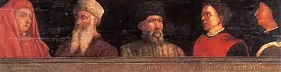 У Флоренції Козімо Медічі і його спадкоємці намагаються підкреслити свою владу і виняткове становище, вони фінансують художні роботи, їх приклад у цьому слідують їх прихильники. Прерогатива комуни стає сферою приватного меценатства. В монументальному живописі з'являються портрети Медічі та їх оточення. Республіканський ідеал громадянської рівності, який стримував розвиток індивідуального портрета, втратив своє значення. «Монументальний» портрет поширюється усе ширше: одиничні портретні образи змінюються групами, «прихований» портрет стає явним, житійні оповіді проймаються світським духом.