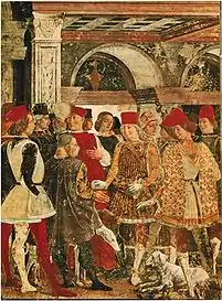 Цікава ще одна фреска делла Франчески — «Сіджисмондо Малатеста перед святим Сигізмундом» (1451, Ріміні, церква Сан Франческо). Сцена «лицарського» поклоніння вірізняється майже світським характером. Профіль Малатести написаний абсолютно портретно. В образі святого, можливо, написаний імператор Сигізмунд I, який звів Малатеста у лицарі. Такий тип вотивних композицій буде розвиватися у венеціанському живописі (Джованні Белліні, «Дож Агостіно Барбаріго перед Мадонною», 1488, Мурано, Сан П'єтро Мартіре).