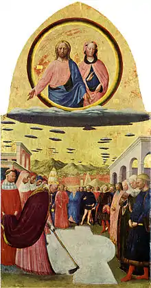 Фра Анжеліко. «Папа Сикст II вручає св. Лаврентію скарби церкви для роздачі їх бідним»