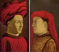 До середини XV століття «приховані» портрети все активніше впроваджуються в релігійні композиції. Портретні образи тепер вже досить просто відрізнити від типових. Перші зазвичай профільні (спадщина донаторського портрета). Але, хоча у фресках ця традиція вже закріпилася, у вівтарних картинах (через їх важливість) портрети вводять обережніше і сильніше «маскуючи». Але й тут очевидна тенденція все більшого наближення до реалізму на тлі типових персонажів легенд.