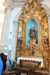 Приблизно з 1675 мистецтво створення португальських барокових вівтарів вступило у період вищого власного розвитку. Склалась місцева художня концепція вівтаря. Вівтар розташовували у великій центральній ніші, що нагадувала каплицю, а сам вівтар нагадував тріумфальну арку. Простір арки віддавали або скульптурі Богородиці, або розп'ятому Христу на Голгофі. Яруси підніжжя прикрашали великими свічками, вогники котрих додатково акцентували і висвітлювали вівтарний центр. Пишність дерев'яного і визолоченого вівтаря відігравала надзвичайну роль у декоративному ансамблі храму. Золочена різьба португальських майстрів, відома під назвою талья дорада, уславила і саму Португалію. Для створення храмових вівтарів не жалкували ні коштовних — бразильської деревини, ну золота, насиллям викачаного з португальських колоній. Навіть перелік уславлених зразків вівтарів цього періоду має декілька сторінок.