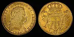 Найперше ескудо були запровадженні у 1722 році як золоті монети номіналами 1⁄2, 2, 4 і 8 ескудо. Вони карбувалися протягом усього XVIII століття і перебували в обігу паралельно з монетами португальського реалу.[1][2]