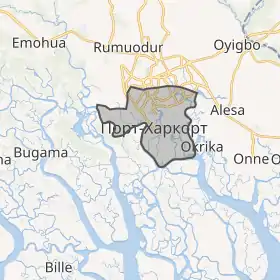 Великий Порт-Гаркорт включає власне міста Порт-Гаркорт, що складається зі старого європейського (тауншип) і прилеглих декількох нових кварталів, а також з семи районів з місцевим самоврядуванням — Окріка, Обіо-Акпор, Ікверре, Ойігбо, Огу-Боло, Тай і Елеме.