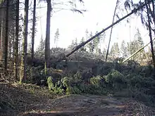 Коли дерево обдувається, прогалини зазвичай заповнюються невеликими трав'янистими саджанцями, але це не завжди так; пагони з поваленого дерева можуть розвинутися і взяти щілину.[13] Зростаюча здатність може мати значний вплив на популяцію рослин, популяції рослин, які, як правило, використовували б щілину падіння дерев, перебігали і не могли конкурувати з пагонами впалого дерева. Пристосування видів до порушень є видовим, але те, як кожен організм адаптується, впливає на всі види навколо них.
