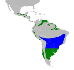 - S. l. luteiventris (Meyen, 1834) — гніздяться на півдні Бразилії (Санта-Катарина і Ріу-Гранді-ду-Сул), в Уругваї, на півночі і сході Аргентини (на південь до Чубута), в центральному Чилі (від Кокімбо на південь до Лос-Ріоса). взимку мігрують до південного Перу (Куско, Пуно), центральну і східну Болівію, на південь центральної Бразилії (від Мату-Гросу на схід до Баїї) і в Парагвай.