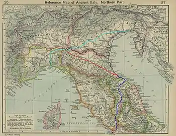 Будова дороги була розпочата у 148 році до н. е. за наказом консула Спурія Постумія Альбіна Магна. Дорога пролягала з Генуї на північ через Апеніни до Дерторіі (Тортона), звідти в Плацентію (П'яченца), Кремону, Верону, Віцентію (Віченца) та Аквілею.