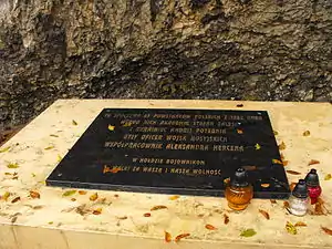 На надгробку написано: «Тут спочиває шістдесят п'ять невідомих повстанців 1863 року і серед них академік Стефан Залевський й українець Андрій Потебня колишній офіцер російських військ та соратник Олександра Герцена. Вічна слава бійцям за нашу і вашу свободу!»