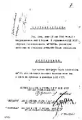 - Дотеперішній документ - Удостов(е)реніе Петрогр. Коменданта № 2415 отъ 19 апр. 1917 г. [Іншим почерком:] Полтавськой губ. Кобеляцкого у(е)зда им(е)ніе Просяниковка Петроград 4 Дек. 1917 р.