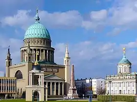 Історичний центр міста — Старий ринок. Тут були зведені Міський палац, церква Св. Миколая, Люстгартен і Стара ратуша. За часів НДР тут також з'явилися висотна будівля готелю «Меркур», будівля Вищої спеціальної школи Потсдама і музей кіно. На місці знесеного Міського палацу планується звести нову будівлю Бранденбургського ландтагу.