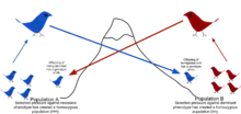 ![]() Перенос алелів від однієї популяції до іншої через міграцію окремих особин |