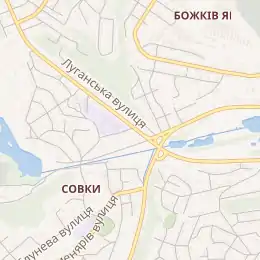 | Тролейбуси | 42 (по проспекту Валерія Лобановського) |