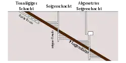 Обладнується, в залежності від кута нахилу, конвеєрним та (або) рейковим транспортом. Зазвичай має невеликий кут нахилу (до 18°), оскільки при більших кутах його використання не є ефективним.