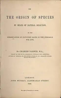 ![]() Титульна сторінка «Походження видів», 1860 рік |