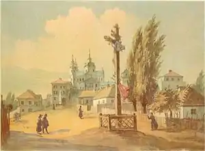 Вид на околиці з тераси Почаївської лаври. Акварель. (1846)