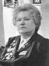 1921—1995 | Танкістка Червоної армії, у 1943 році, під час Німецько-радянської війни, була важко поранена в боях за Броварський район. | 14 вересня 1967 року |