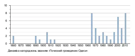 1795 | 1891 | «У зв'язку з п'ятдесятирічним ювілеєм службової діяльності Новоросійського та Бессарабського генерал-губернатора графа Олександра Григоровича Строганова. На вічні часи звання першого громадянина міста Одеси». | 10 (22) червня 1862[9] | [10] |