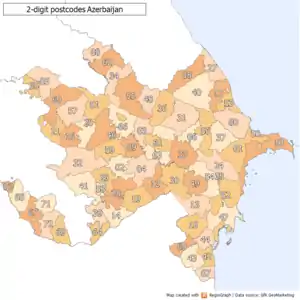 Двозначні поштові зони Азербайджану (визначаються за першими двома цифрами поштового індексу)