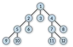 - Нехай {x,y} - ребро, у якому номер BFS(у) не визначено. Позначити це ребро потовщеною суцільною лінією, визначити BFS(у) як черговий BFS-номер, включити вершину у чергу й перейти до кроку 2.