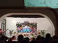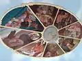 Розпис на стелі Прабгупададеша з зображенням епізодів з життя Бгактіведанти Свамі Прабгупади.