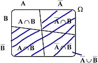 де — стандартні позначення для об'єднання множин, перетину та доповнення множин.