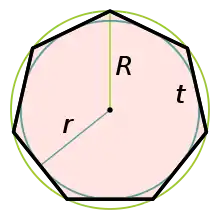 Нехай — радіус описаного навколо правильного многокутника кола; тоді радіус вписаного кола дорівнює