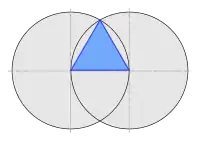- Ці два кола перетинаються в двох точках, кожна з точок перетину разом із центрами кіл утворюють правильні трикутники.