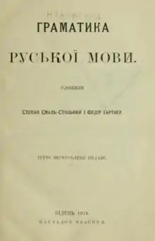 - (друге видання, 1907, Львів) Смаль-Стоцький, Степан; Ґартнер, Федір (1907). Руска граматика (вид. 2). Львів: Друкарня наукового товариствва імені Шевченка. 246 стор.