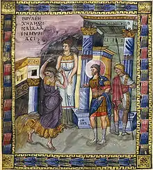 Давид, прославлений ізраїльськими жінками з Паризького Псалтиря, приклад македонського мистецтва (візантійського) (іноді його називають македонським Відродженням)