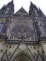 Розмах готичного стилю починається при Люксембургах. У 1344 році Карл IV, тоді ще принц та маркграф Моравський, разом зі своїм багаторічним приятелем Ернестом з Пардубіц, та своїм батьком Яном Люксембурзьким, закладає кам'яний собор св. Віта у зв'язку з підвищенням празького єпископства до архієпископства. Головним архітектором було призначено Матвія з Аррасу, а пізніше Петра Парлержа. То є тринефний храм з поперечним нефом, портиком та оточений капличками. Найвідоміша з них це каплиця св. Вацлава, збудована над його домовиною. Велика, або Дзвонова, вежа, 109 метрів заввишки, була закладена Парлержем, але завершена аж у 1554 році. У році 1770 була увінчана бароковою маківкою. Західна частина: фасад з 80-метровими вежами, була прибудована у 19 та на початку 20 століть, за проектом Йозефа Моцкера. Після його смерті у 1899 керівництво будівництвом узяв Йоже Плечнік. Собор було завершено у 1929. Окрім іншого слугує за скарбницю, де зберігаються чеські коронні дорогоцінності, мавзолей королів та галерею їх скульптурних та малярських портретів.