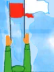 Замість жовтого прапорця може використовуватись[4] білий. Розміри полотнища 32 х 22 см. На ручках можуть наклеюватися підказки щодо подачі команд / сигналів.