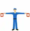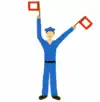 | Команда «Збільшити дистанцію» подається для зміни дистанції у вигляді сигналу (підняти ліву руку (червоний прапорець) вгору, а праву (жовтий прапорець) випростати горизонтально убік і розмахувати нею вниз та угору до рівня плеча). | |