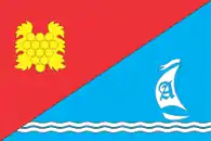 Прямокутне полотнище із співвідношенням сторін 2:3 поділене по діагоналі із верхнього вільного кутка на верхню червону і нижню блакитну частини. У першій частині жовте гроно винограду з двома листками. У другій частині біла яхта із білим вітрилом і блакитною літерою А та білим вимпелом, вздовж нижнього краю дві білі вузькі хвилясті смужки.