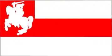 Білоруська Народна Республіка | 1918—1919 рр. | Полотнище з співвідношенням сторін 1:2, з трьох рівних горизонтальних смуг — двох білих і однієї червоної між ними. |