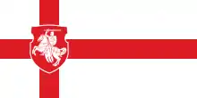 Біло-червоно-білий прапор з реконструйованим гербом Білоруської Народної Республіки, 1918 р.