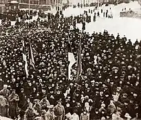 Можливість публічного використання прапора з'явилася під час Лютневої революції 1917: на 40-тисячній маніфестації естонських солдатів та офіцерів у Петрограді 26 березня (8 квітня) 1917 року майоріли понад 100 естонських триколорів, а вимогою демонстрантів було надання Естонії автономного статусу[8]. Солдати та офіцери естонського походження приколювали до мундирів стрічки кольорів національного триколору; синьо-чорно-біла кольорова гама широко використовувалася естонцями на плакатах, квитках тощо.