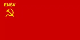 25 серпня 1940 року було прийнято Конституцію Естонської РСР, в якій встановлювались нові державні символи. Відповідно до статті 117 Конституції офіційним прапором тепер вже Естонської РСР став червоний стяг з жовтим серпом і молотом у верхньому лівому куті, над якими розміщувалась абревіатура ENSV (від ест. Eesti Nõukogude Sotsialistlik Vabariik — Естонська Радянська Соціалістична Республіка) зі співвідношенням ширини до довжини 1:2[11].