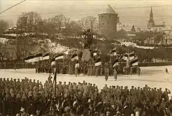 1934 року в Естонії проводилися святкові заходи з нагоди 50-річчя національного прапора. Головні урочисті заходи були проведені в Тарту та Отепі, де на будівлі церкви, в якій відбулося освячення стяга, було відкрито меморіальну дошку, а сам прапор було передано до Музею естонського народу[10].