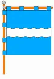 Квадратне синє полотнище, посередині якого йде біла хвиляста смуга (завширшки в 1/5 сторони прапора).
