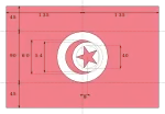 Діаметр уявного кола, на якій розташовані вершини п'ятикутної зірки, дорівнює приблизно 15 % довжини прапора. Вершини розташовані на рівній відстані один від одного, причому одна з них розташована на горизонтальній медіані прапора, ліворуч від центру кола. З лівого боку зірка оточена червоним півмісяцем, утвореним перетином двох дуг, причому діаметр зовнішньої душі дорівнює 1/4 довжини прапора, а діаметр внутрішньої — 1/5 довжини прапора.