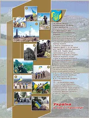 Український національний і державний прапор 16 липня 2010 року о 12.00 дня одночасно піднято в ряді знакових місць і гірських вершин, зокрема —