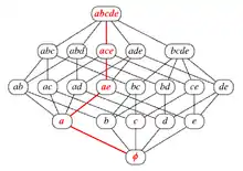 Більш формально, прапор ψ n-вимірного багатогранника — це множина {F−1, F0, …, Fn}, така, що Fi ≤ Fi+1 (-1 ≤ i ≤ n − 1) і є рівно один елемент Fi у ψ для кожного i, (-1 ≤ i ≤ n). Оскільки мінімальна грань F−1 і максимальна грань Fn повинні бути в кожному прапорі, їх часто опускають зі списку граней для стислості. Ці дві грані називаються невласними.
