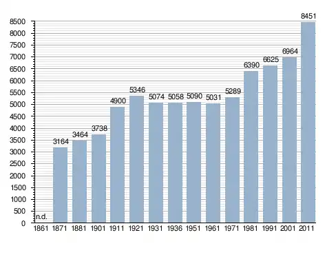 Станом на 31 грудня 2014 року в муніципалітеті офіційно проживало 1545 іноземців з 44 країн, серед них 781 громадянин країн Євросоюзу та 32 громадяни України.[4]