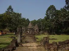 Три прасати (кхмерська вежа) на задньому плані схожі одна на одну, втім нижчі за вежі першого ряду, й одна на північно-західному куті платформи, без усілякої очевидної причини, зміщена у напрямку сусіднього святилища свого ряду. Ті вежі були призначені для жіночих божеств і мають площу всього 2,5 метри. Пропорційно зменшуючись вони цілковито виготовлені з цегли, за винятком дверних рам з пісковику.
