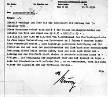 Документ гестапо про превентивний арешт людини, що сповідує комуністичні погляди