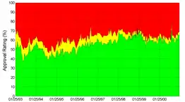 Клінтон залишив свою посаду з високими рейтингами схвалення, хоча його віце-президента Аль Гора переміг губернатор Техасу Джордж Буш із невеликим відривом на президентських виборах 2000 року. З моменту закінчення президентства Клінтона історики та політологи, як правило, оцінювали його як вище середньостатистичного президента.[1]