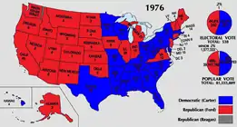 Врешті-решт, Картер переміг на виборах, отримавши 50,1 % народного голосування та 297 голосів виборців порівняно з 48,0 % голосів народного голосу та 240 виборчих голосів за Форда. Форд домінував на Заході і чудово працював у Новій Англії, але Картер переміг в більшій частині Півдня та переміг в Огайо, Пенсільванії та Нью-Йорку. Хоча Форд програв, за три місяці між Республіканською національною конвенцією та виборами йому вдалося закрити те, що опитування, показані Картером у 33 бали, привели до крапки в 2 бали.
