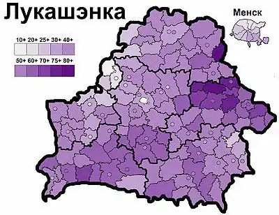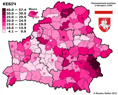 У другому турі Олександр Лукашенко набрав 80,1 % (56 % голосів виборців, з урахуванням явки), В'ячеслав Кебич — 14,1 %.