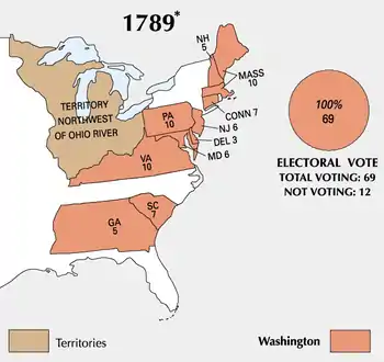 До виборів 1789 року президент континентального конгресу, утвореного 1774 року, не був виборною посадою та володів обмеженою владою, порівнянною з владою спікера парламенту або Президента сенату США наших днів. Вибори були проведені згідно з другою статтею Конституції США, прийнятою 17 вересня 1787 року. З 13 штатів у виборах брало участь 10: Північна Кароліна та Род-Айленд до того часу ще не ратифікували Конституцію США, а Нью-Йорк не встиг прийняти відповідні законодавчі акти.