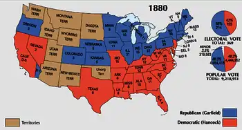 Президентські вибори в США 1880 року проходили 2 листопада та розглядалися як референдум щодо схвалення ослаблення політики реконструкції Півдня, проведеного республіканською адміністрацією Ратерфорда Хейза. Однією з небагатьох дискусій передвиборчої кампанії було питання тарифів. Республіканці підтримували їх збільшення, а демократи пропонували зниження. Президент Хейз, дотримуючись обіцянки, даної на виборах 1876 року, не висував себе на другий термін, тому республіканці висунули Джеймса Абрама Гарфілда, що міцно стояв на партійній платформі. Демократична партія номінувала генерала Вінфілда Скотта Генкока, що брав участь в громадянській війні. Гарфілд набрав лише на 2000 більше голосів, ніж Генкок, але завдяки мажоритарній системі в штатах значно обігнав Генкока по голосах виборників: 369 проти 214. Це були найрівніші результати в історії президентських виборів США.